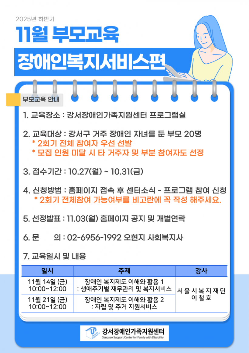 | 프로그램명 | 2025년 하반기 11월 부모교육 참여자 모집 안내 | |||